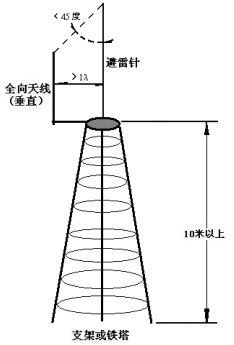 电台之间收发的无线电波,通过电台天线在空中传播。为保证信号传输的稳定可靠,电台根据应用项目的实际情况,对天线的架设高度和型号选用有具体要求。1、 主站 主站为全向天线,以覆盖各方向分布的子站。如果是开阔无阻挡地形,天线架设高度可以由公式:D=4.12×(√100+√4)确定,即半径10公里的覆盖范围,主站天线需架设离地面10米以上。如下图: