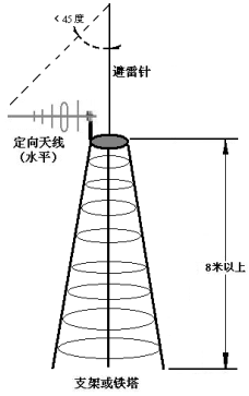2、 子站 子站为定向天线,对准主站天线。同样架设开阔无阻挡,根据公式来确定架设高度。如下图: