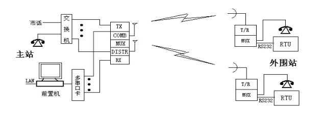 用无线电台方式实现远程数据采集、监视与控制以及远距离话路传输,相对于架设专用电缆(或光缆)、租用电信专线等,具有造价低廉、施工快捷、运行可靠、维护简单等优点。