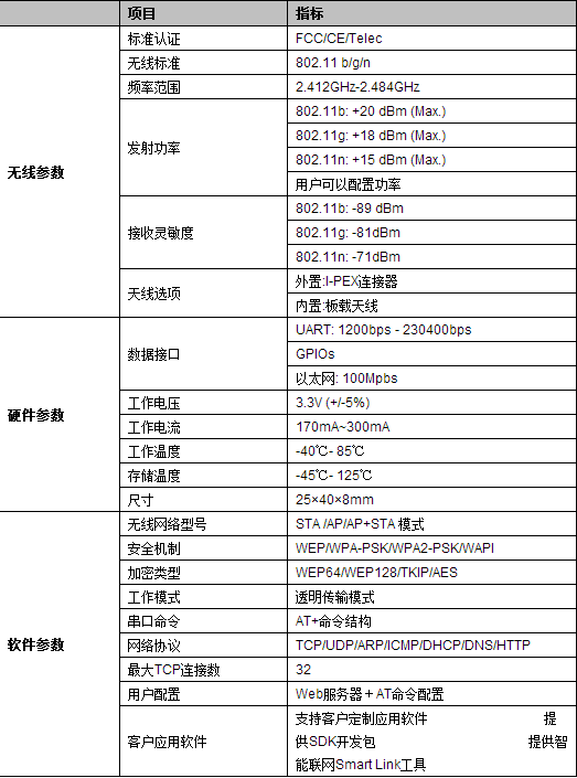 ● 支持802.11b/g/n无线标准